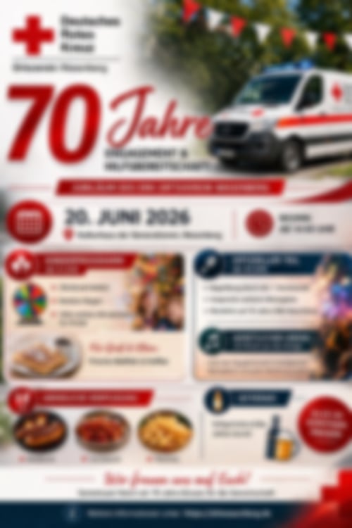 ein ganz besonderer Anlass steht vor der Tür: Der DRK Ortsverein Wasenberg wird 70 Jahre alt – und das möchten wir gemeinsam mit euch feiern! ❤️